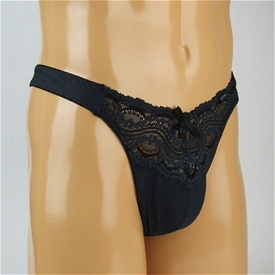 メンズ ストレッチ&レースコンビTバック (ブラック) ブラック