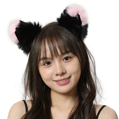 エロコス もふもふ耳カチューシャ (黒×ピンク) 黒×ピンク