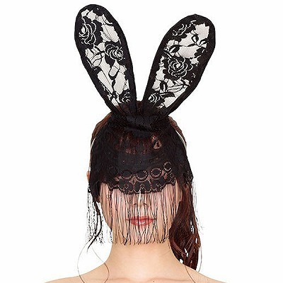 長ーいウサギの耳付きマスクカチューシャ ブラック
