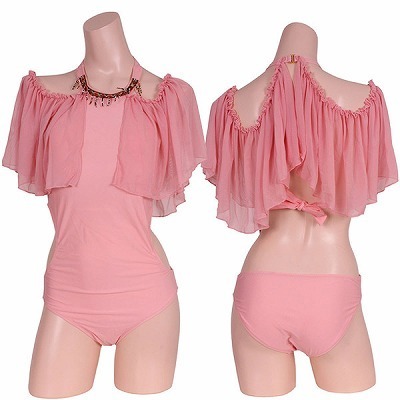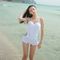 フェミニンレース2枚仕立てワンピーススイムウエアー ホワイト ホワイト