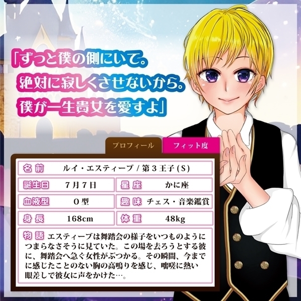 さあ、運命の王子様はだれ…?◆ルイ・エスティーブ第3王子◆幼さが残りながらも男の子らしさも備え持つ優しい癒し系男子。
